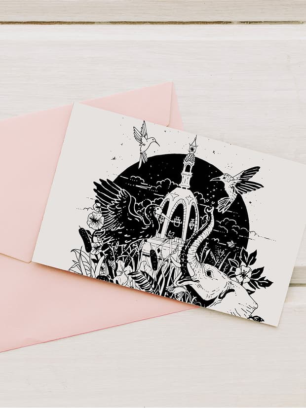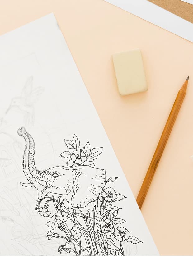 À l'encre de Chine, le dessin s'approfondit et prend vie. Quelques semaines plus tard, votre illustration unique est prête à rejoindre vos murs ou à être offerte.